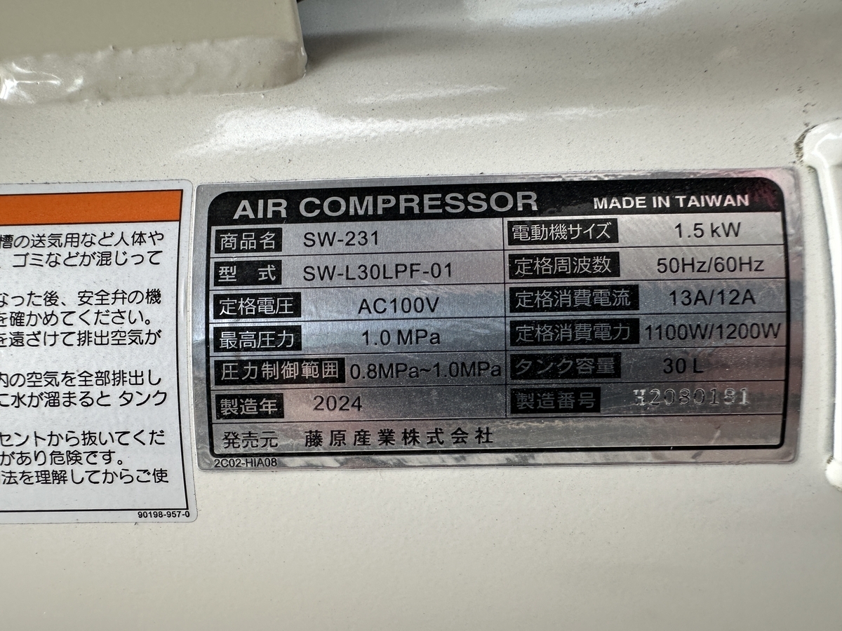SW-231の調整をして0.8MPa弱で止まるようにしたら